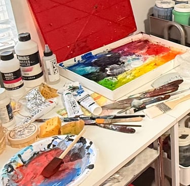 If you’ve ever wanted to peek inside the toolkit of an abstract artist who lives for bold color and textural joy - this is it. These tools are my day-one supporters and midnight therapy crew. 💌