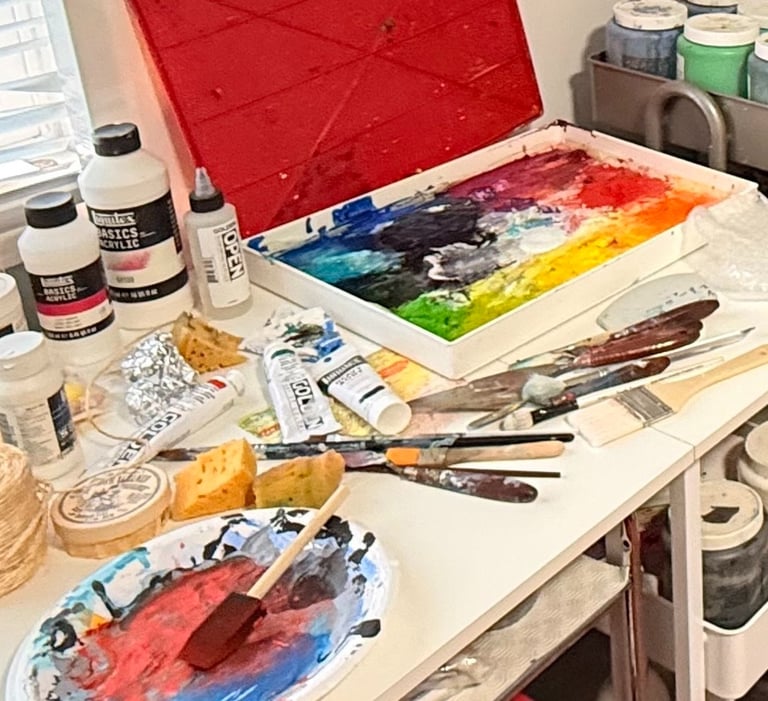 Welcome to my creative chaos corner - where brushes go missing, palettes live dangerously close to catastrophe, and somehow, magic still happens. These aren’t just random supplies I thought looked cute; this blog post is basically a love letter to the materials I reach for over and over. The ones that help me bring color riots to life, the ones that rescue me from acrylic meltdowns, the ones that feel like a warm hug from the muse herself (but with better pigment control).